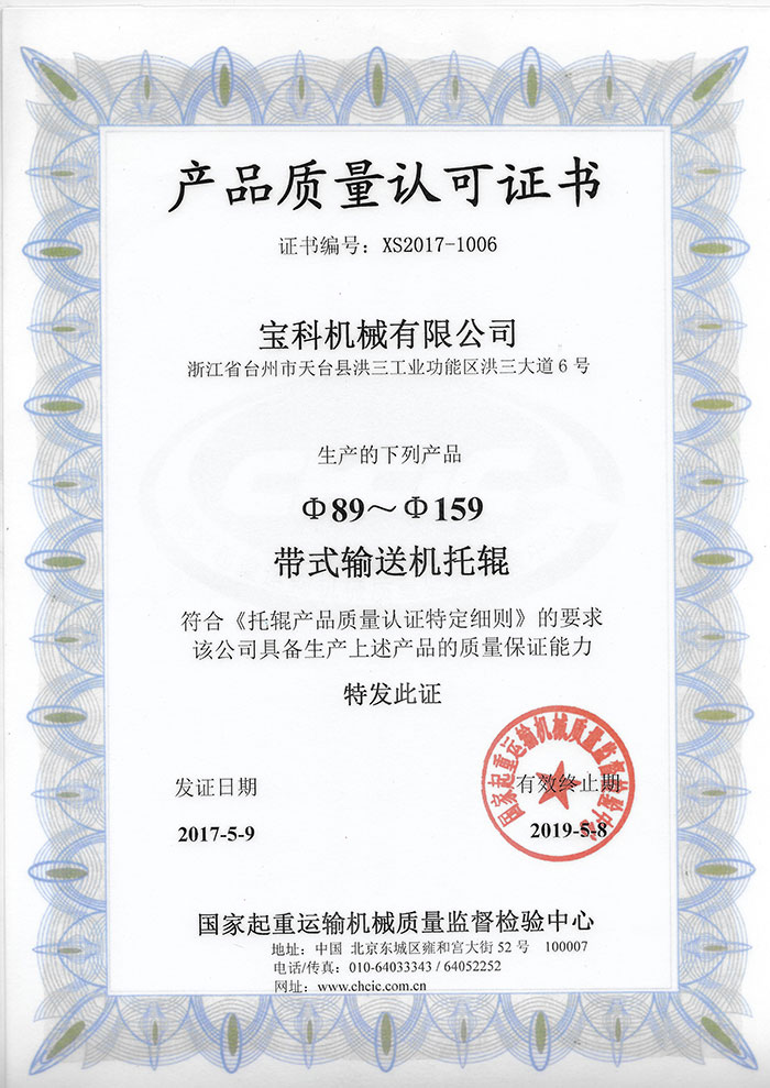 寶科機械有限公司通過國家起重運輸機械質量監督檢驗中心產品質量認證。