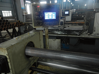 檢查通過(guò)的鋼管被送入自動(dòng)管加工機(jī)。管材切斷后,對(duì)鏜雙側(cè)止口,高壓氣體清掃管內(nèi)鐵屑和雜質(zhì)。